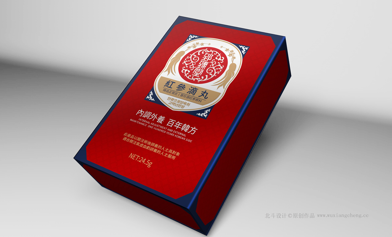 此次合作的新款產(chǎn)品包裝設(shè)計是:紅參滴丸。面對消費(fèi)者群體中老年,原料供應(yīng)商:韓國正官莊。