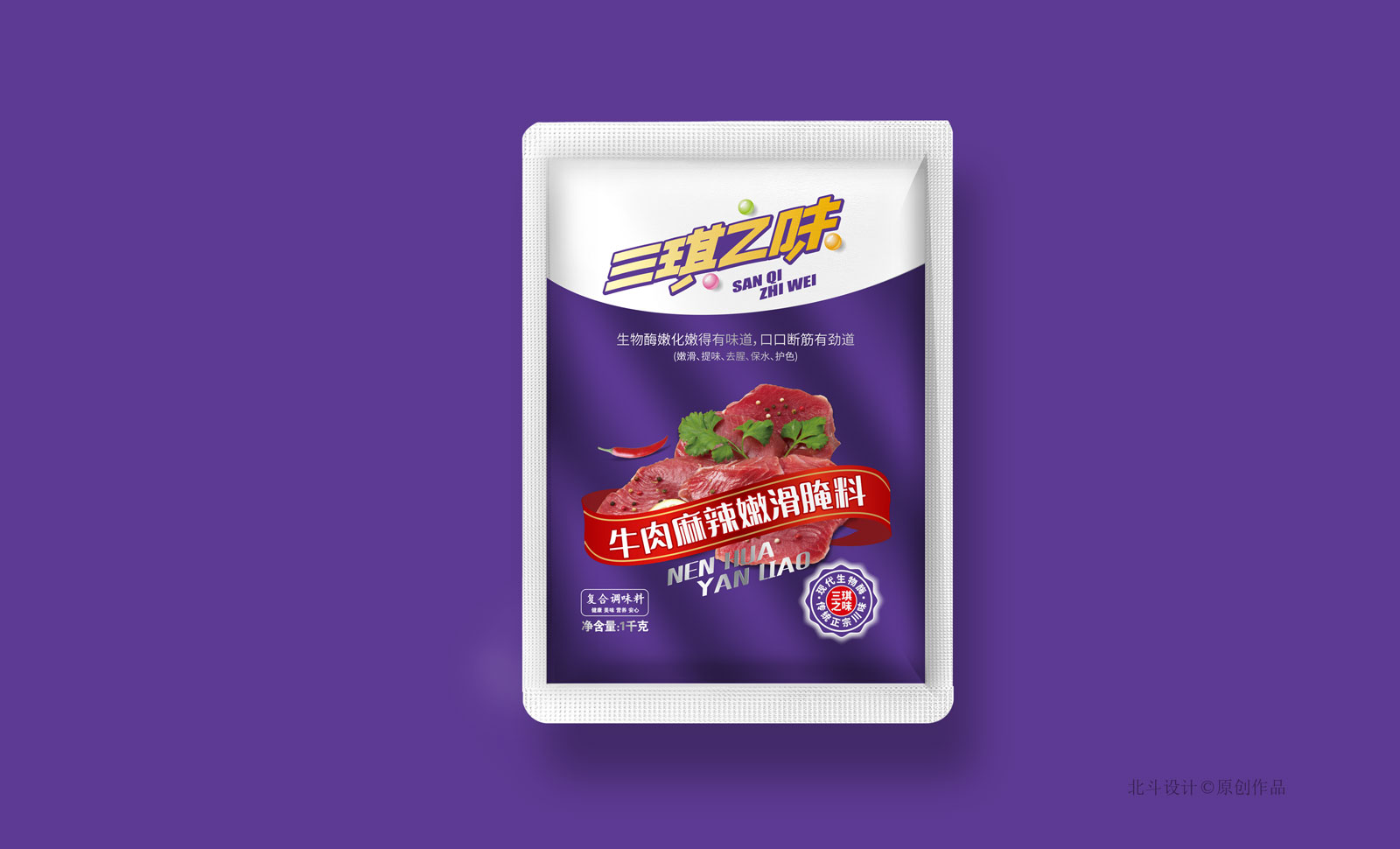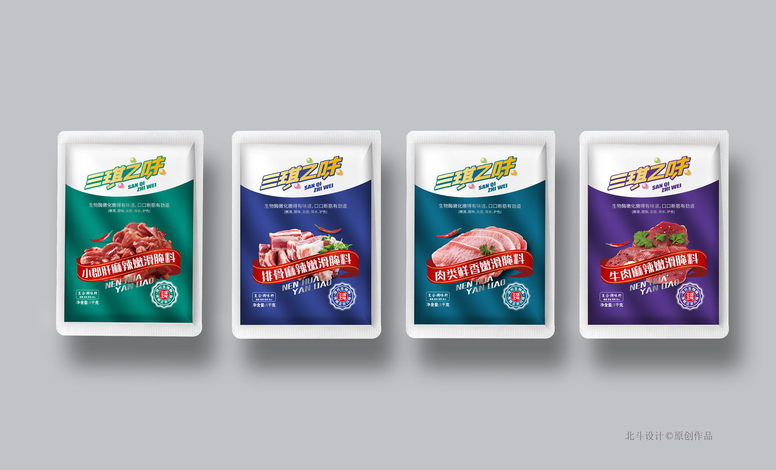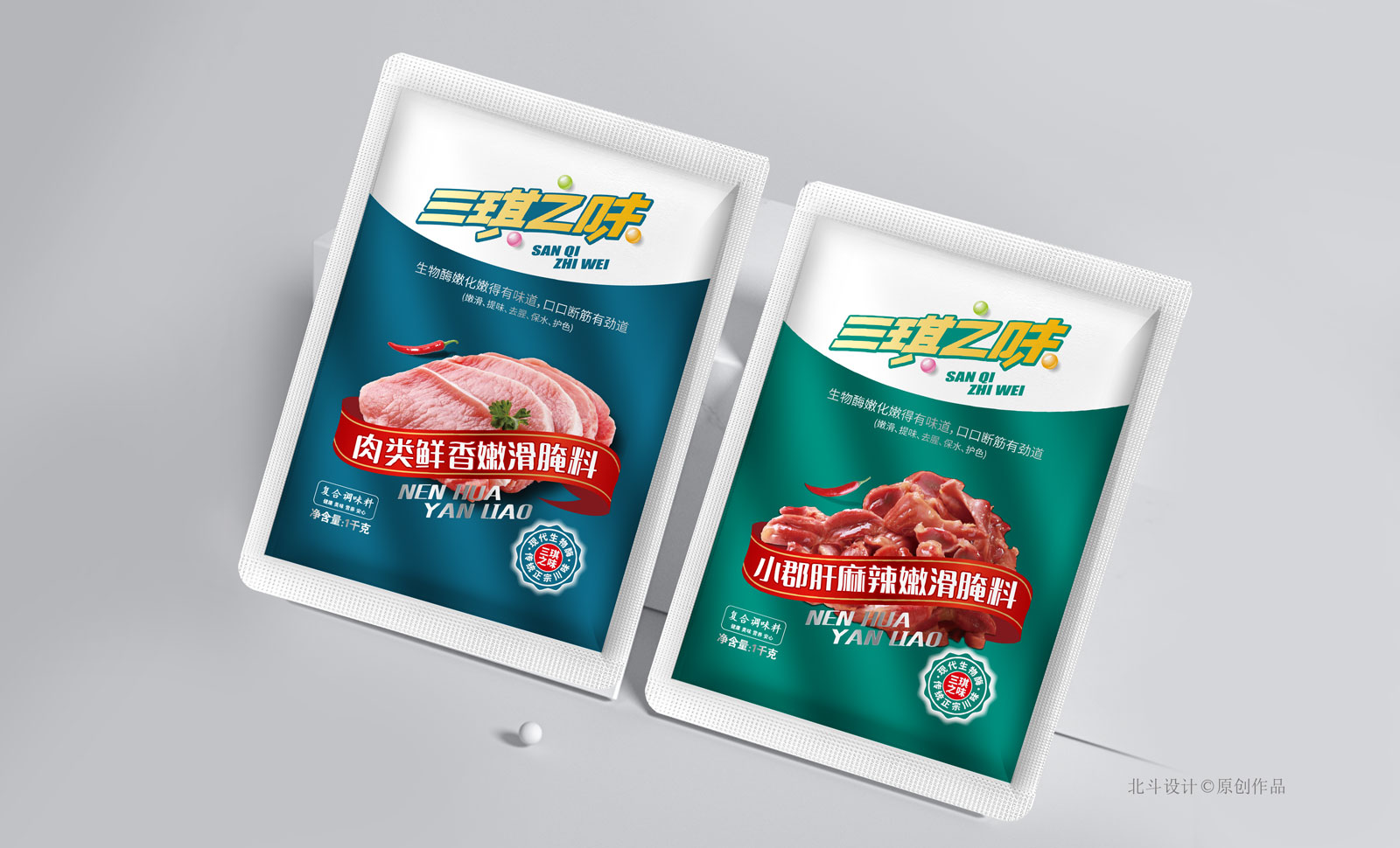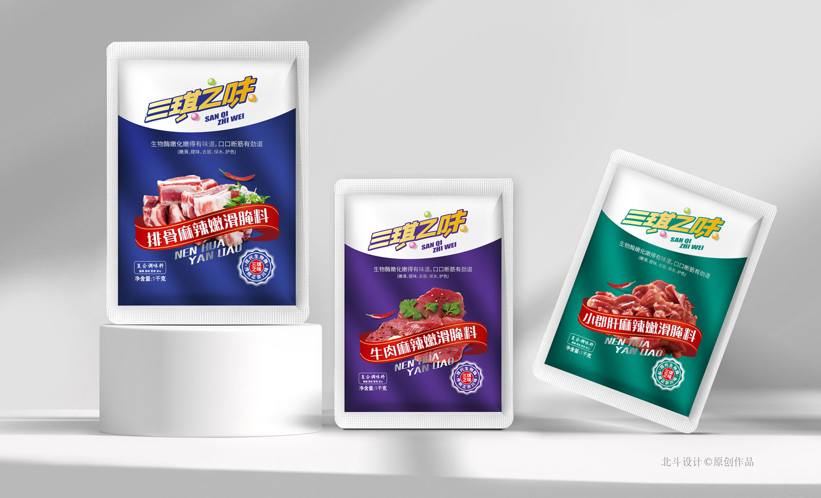 三琪之味這個(gè)品牌的品類定義是專門提供現(xiàn)代霉解技術(shù)的調(diào)味品,針對于餐飲終端客戶提供保鮮定制產(chǎn)品服務(wù)。而嫩滑這個(gè)系列產(chǎn)品主要針對生鮮肉制品的腌制調(diào)配,通過現(xiàn)代生物蛋白酶介入后,讓肉質(zhì)變的更加鮮美,口感更加脆嫩,而且保留了肉質(zhì)原有的營養(yǎng)分子結(jié)構(gòu)。此次產(chǎn)品劃分有:肉類鮮香嫩滑腌料,排骨麻辣鮮香腌料,小郡肝麻辣嫩滑腌料,牛肉麻辣嫩滑腌料四個(gè)口味產(chǎn)品。