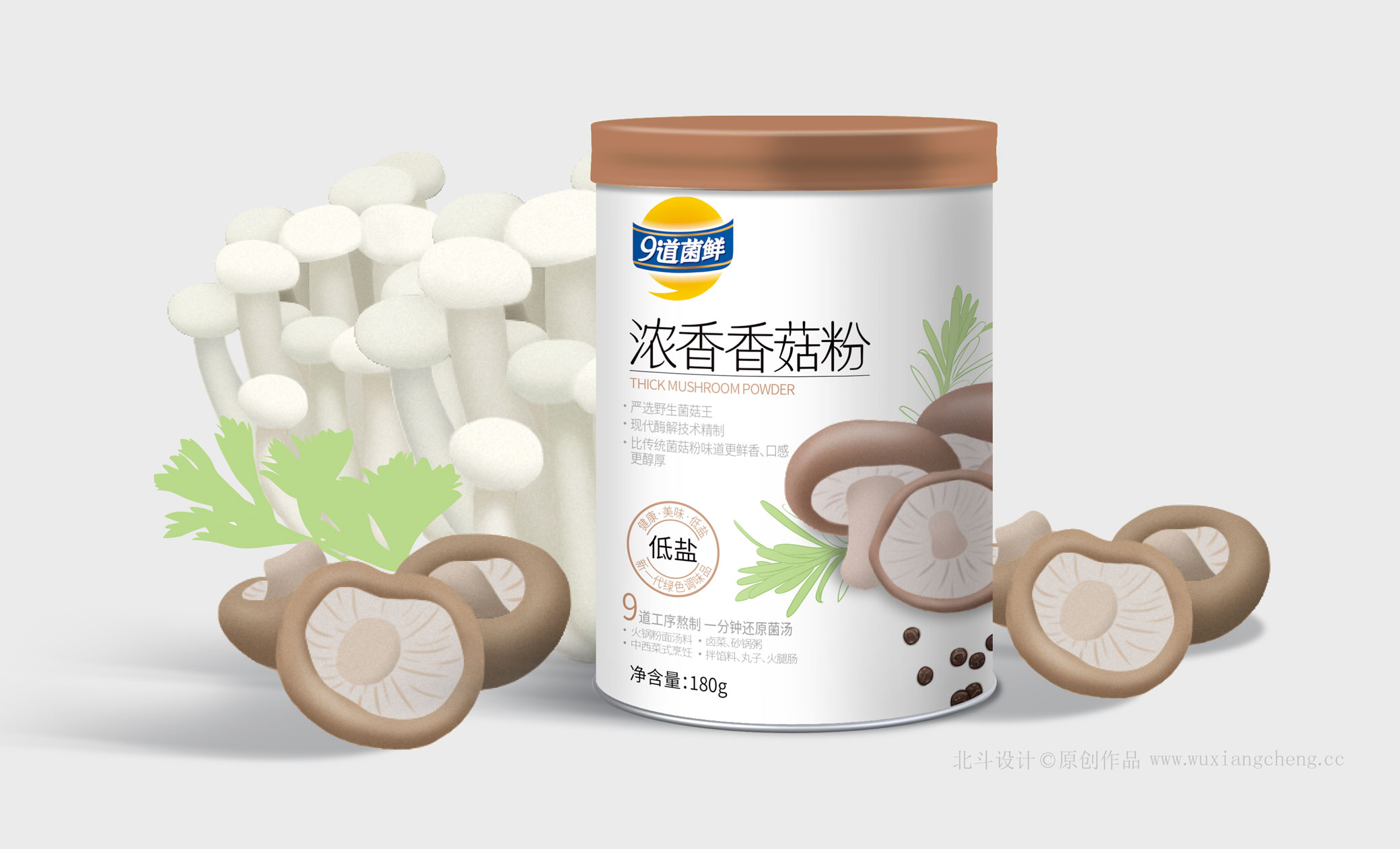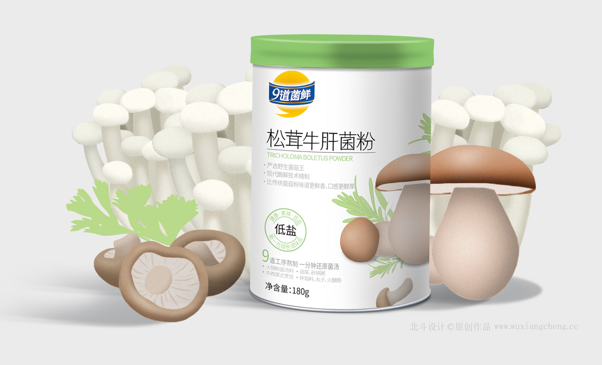 九道菌鮮低鹽菌粉系列設(shè)計(jì)