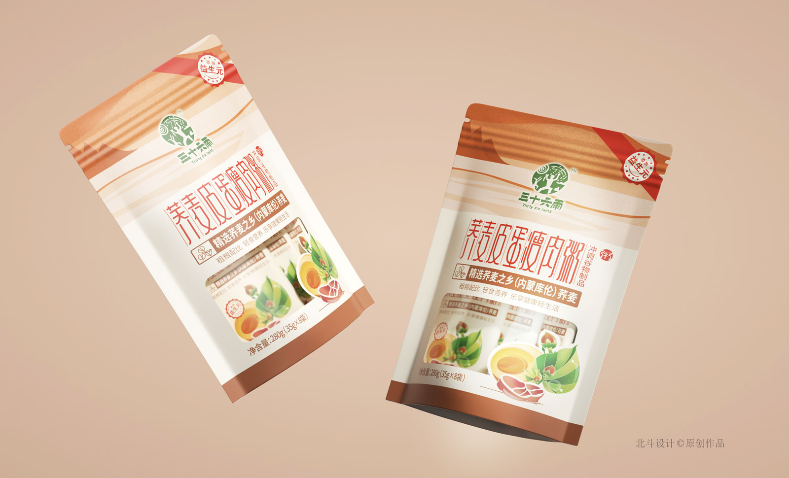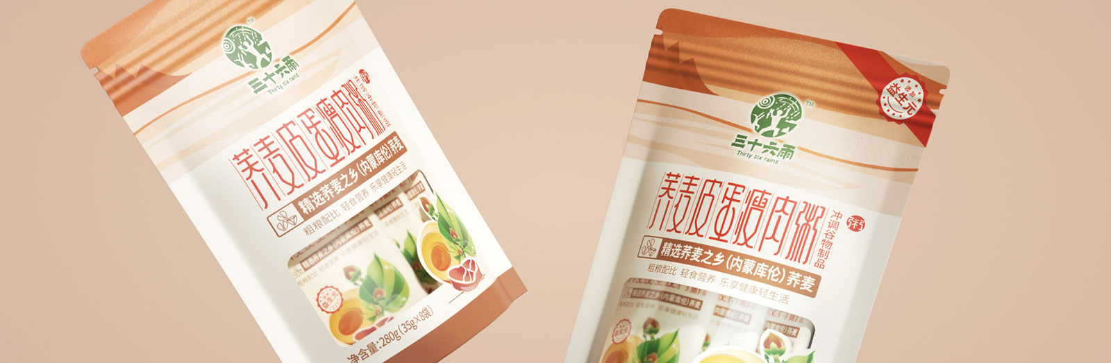北斗設(shè)計(jì)致力于將創(chuàng)意演變成品牌戰(zhàn)略資產(chǎn),為客戶產(chǎn)品塑造更具市場(chǎng)競(jìng)爭(zhēng)力的戰(zhàn)略包裝設(shè)計(jì),讓客戶所花的每一份設(shè)計(jì)費(fèi)能夠形成品牌資產(chǎn)的增值或保值積累。此次幫助三十六雨延展了蕎麥皮蛋瘦肉粥,主打沖調(diào)型代餐飲品類別。三十六雨的產(chǎn)品戰(zhàn)略是圍繞蕎麥為主體開發(fā)關(guān)聯(lián)性快銷食品,致力為客戶解決簡(jiǎn)單代餐的營(yíng)養(yǎng)問題。