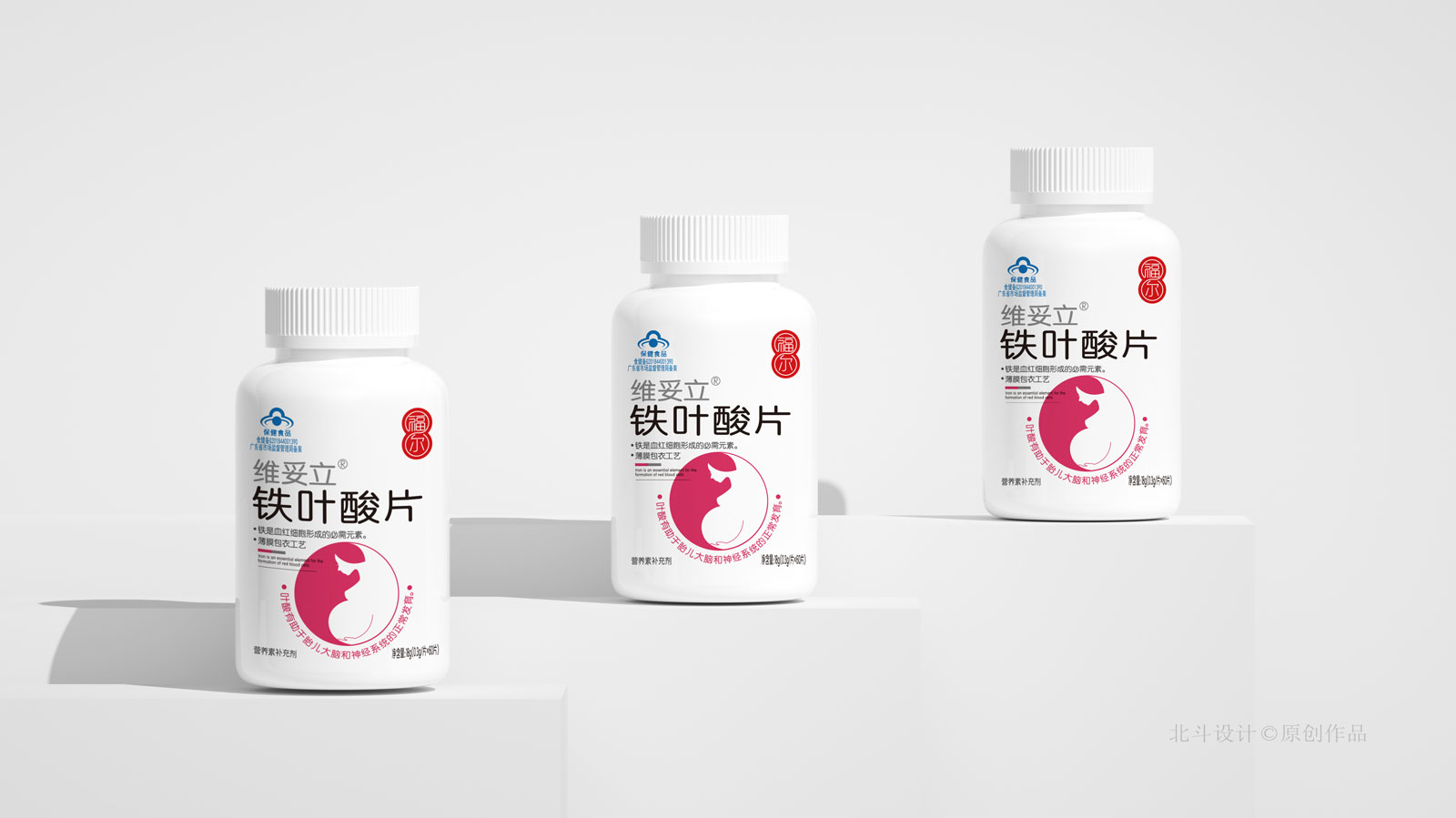 北斗設(shè)計受大參林委托,為其策劃一款鐵葉酸片,目的是打造鐵葉片作為單一品類來推廣操作,為了配合大參林的戰(zhàn)略需求,北斗設(shè)計為其提出了藥品的風(fēng)格+戰(zhàn)略符號認知。首先通過戰(zhàn)略符號區(qū)別于同類產(chǎn)品,迅速將自己的形象在貨架終端與同類產(chǎn)品劃分開;2.通過藥品設(shè)計風(fēng)格,強化產(chǎn)品的安全屬性。