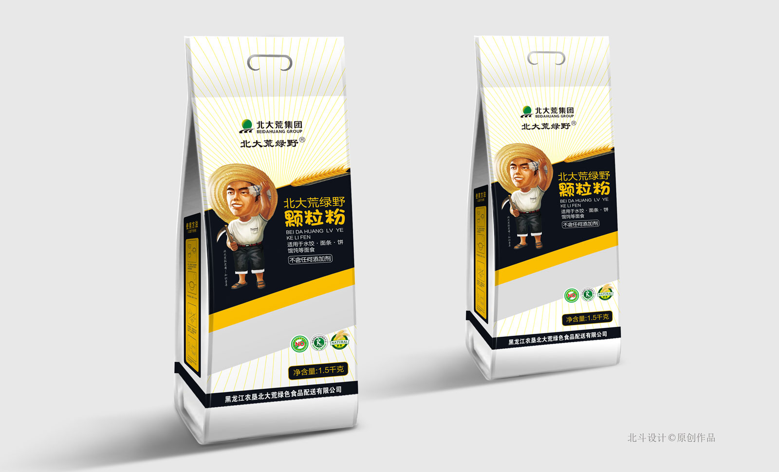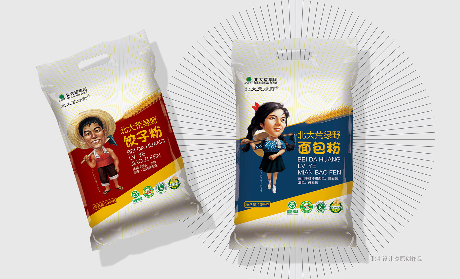 而此次北大荒集團(tuán)旗下北大荒綠野與廣州北斗品牌設(shè)計合作的設(shè)計項目是:麥粉(面粉)系列包裝整合規(guī)劃設(shè)計。這是北斗設(shè)計與北大荒集團(tuán)首次接洽的項目,這個項目是我們的客戶“十六膳”韓總所介紹,在我們深入的了解了北大荒的開墾文化。想把北大荒的開墾文化作為創(chuàng)意的表現(xiàn)方向,最后與客戶不某而合。
