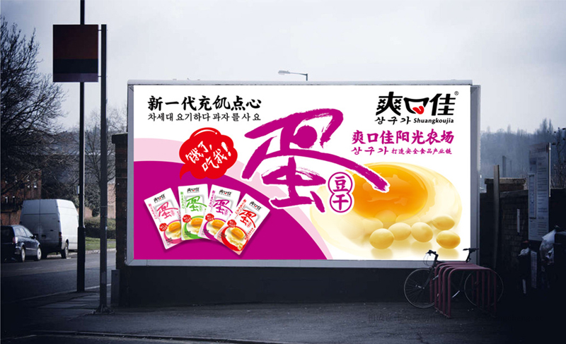 戶外廣告我們采用了連環(huán)畫面展示的手法來展現(xiàn)不同產(chǎn)品口味。選址主要在各大超市商場門口,通過放大真實的產(chǎn)品圖像來刺激消費者的視覺,讓其產(chǎn)生購買欲望的同時能夠記住爽口佳的品牌。