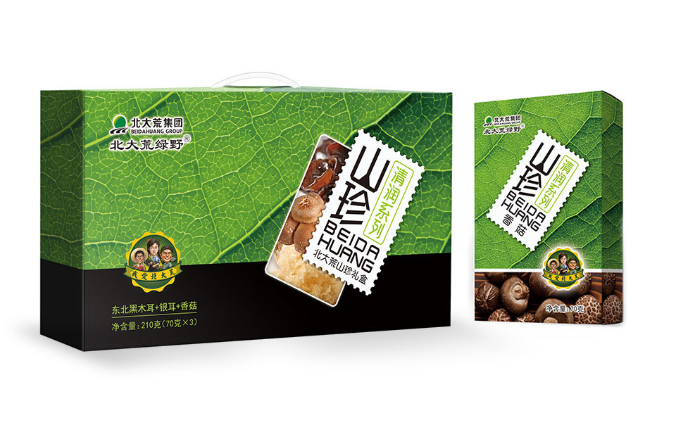 北大荒集團(tuán)委托北斗設(shè)計(jì)完成山珍系列產(chǎn)品包裝規(guī)劃及設(shè)計(jì),項(xiàng)目服務(wù)內(nèi)容:1.東北黑木耳包裝設(shè)計(jì),2.香菇食材包裝設(shè)計(jì),3.銀耳食材包裝設(shè)計(jì),4.禮盒包裝設(shè)計(jì)。