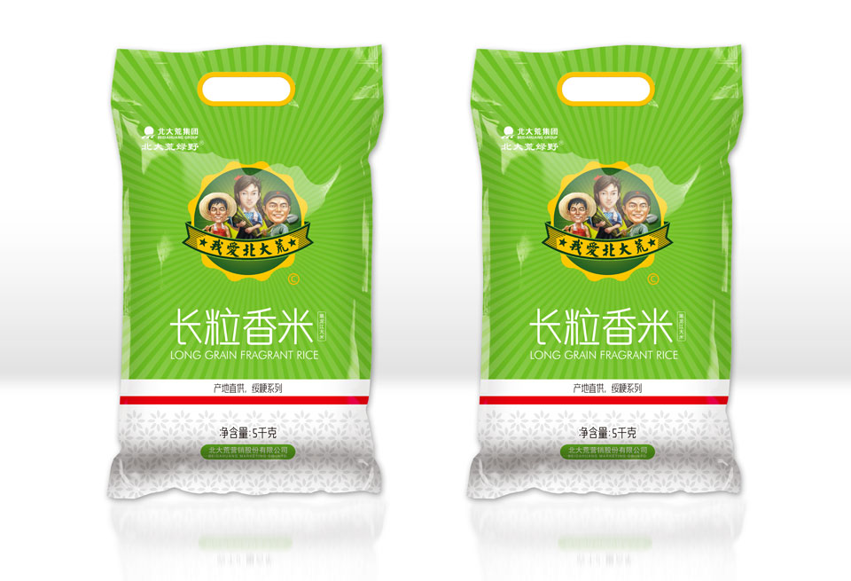 我愛北大荒的主題標(biāo)原本是北斗設(shè)計用來識別北大荒出品的統(tǒng)一識別符號。沒想到被供應(yīng)商看重了,想把這個作為北大荒集團大米產(chǎn)品的視覺識別符號,于是北大荒集團品牌經(jīng)理便再邀請北斗設(shè)計對此系列產(chǎn)品重調(diào)整一個系列出來。就叫做我愛北大荒系列。