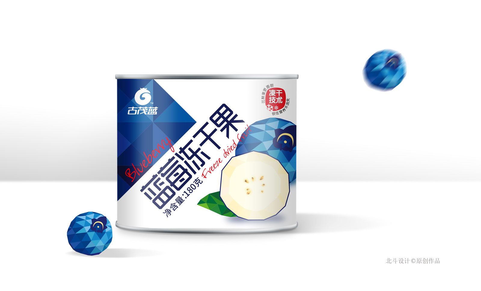 從品牌的獨特記憶形象來描述古茂藍這款外包裝設(shè)計,從產(chǎn)品的外包裝選用形式,產(chǎn)品的圖形創(chuàng)意,表現(xiàn)的含義,都用創(chuàng)意語音來傳達,比如我們用冰塊的創(chuàng)意圖形作為主款包裝設(shè)計的記憶識別,這種冰塊的視覺沖擊猶如鉆石的外形,能夠很好的展現(xiàn)出產(chǎn)品的品質(zhì)聯(lián)想,同時冰塊的運用是與產(chǎn)品的凍干技術(shù)兩者融合,凍干技術(shù)的最大價值就是保留了產(chǎn)品原汁原味的味道與營養(yǎng)成分。這里重點解說下包裝設(shè)計字體的選用與設(shè)計,需要與整體的選用圖及版面構(gòu)成形成呼應(yīng)協(xié)調(diào)。