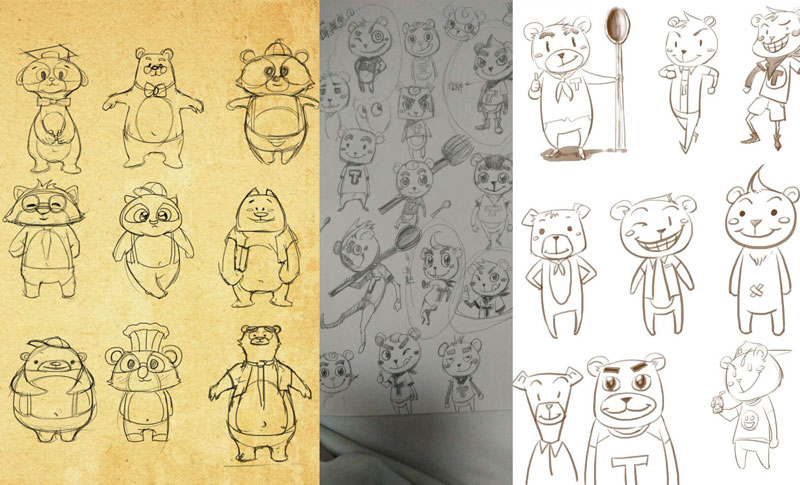 當(dāng)您知道這個(gè)品牌要表達(dá)的是一種什么樣的生活體驗(yàn)方式,你就會(huì)有很多想法去豐富它,讓它更有趣味的存在。探探熊歡樂(lè)餐廳就是親子家庭餐廳成員為主要消費(fèi)對(duì)象。那么他們注重的是健康,孩子快樂(lè)的體驗(yàn)。所以我們?cè)僖?guī)劃空間設(shè)計(jì),logo設(shè)計(jì),卡通形象設(shè)計(jì)都是一體化的視覺(jué)展現(xiàn)。通過(guò)針對(duì)小孩子的天真可愛(ài)塑造了符號(hào)他們性格喜愛(ài)的卡通形象“探探熊”。