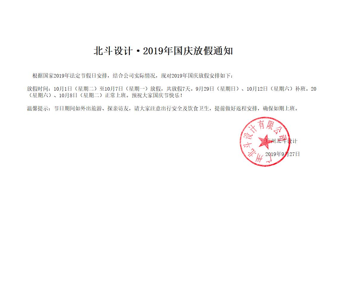 北斗設(shè)計(jì)·2019年國慶放假通知