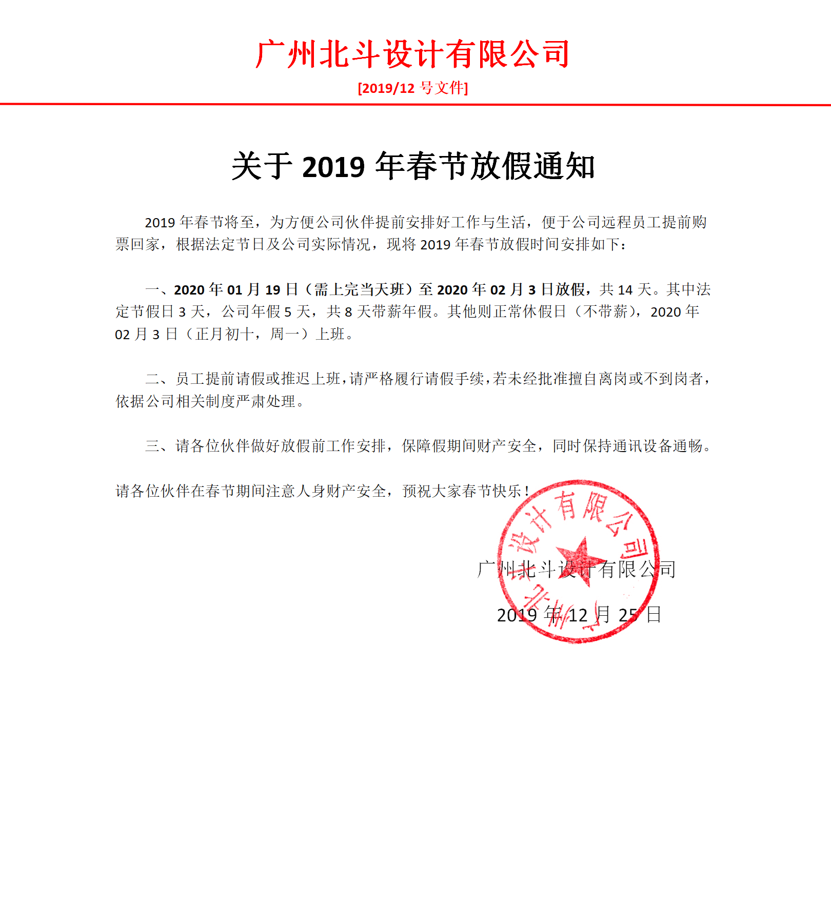 關(guān)于2020年春節(jié)放假通知·北斗設(shè)計(jì)