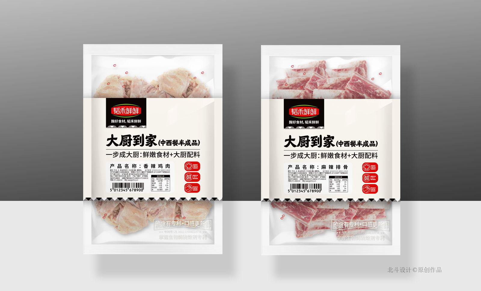 同類產(chǎn)品的品牌形象分析:目前同類產(chǎn)品的品牌形象大都是比較雜亂,缺少系統(tǒng)規(guī)劃,原本市場的火爆度還遠不到爆發(fā)的時刻,加上品牌的魚龍混雜,這也給了韜禾鮮鮮入場的好機會,北斗設計通過從戰(zhàn)略的預判再到創(chuàng)意的表現(xiàn),首先我們必須要解決韜禾鮮鮮的品牌記憶符號,即品牌的戰(zhàn)略超級符號。這里我們采用的是黑格子條紋作為韜禾鮮鮮品牌戰(zhàn)略符號。