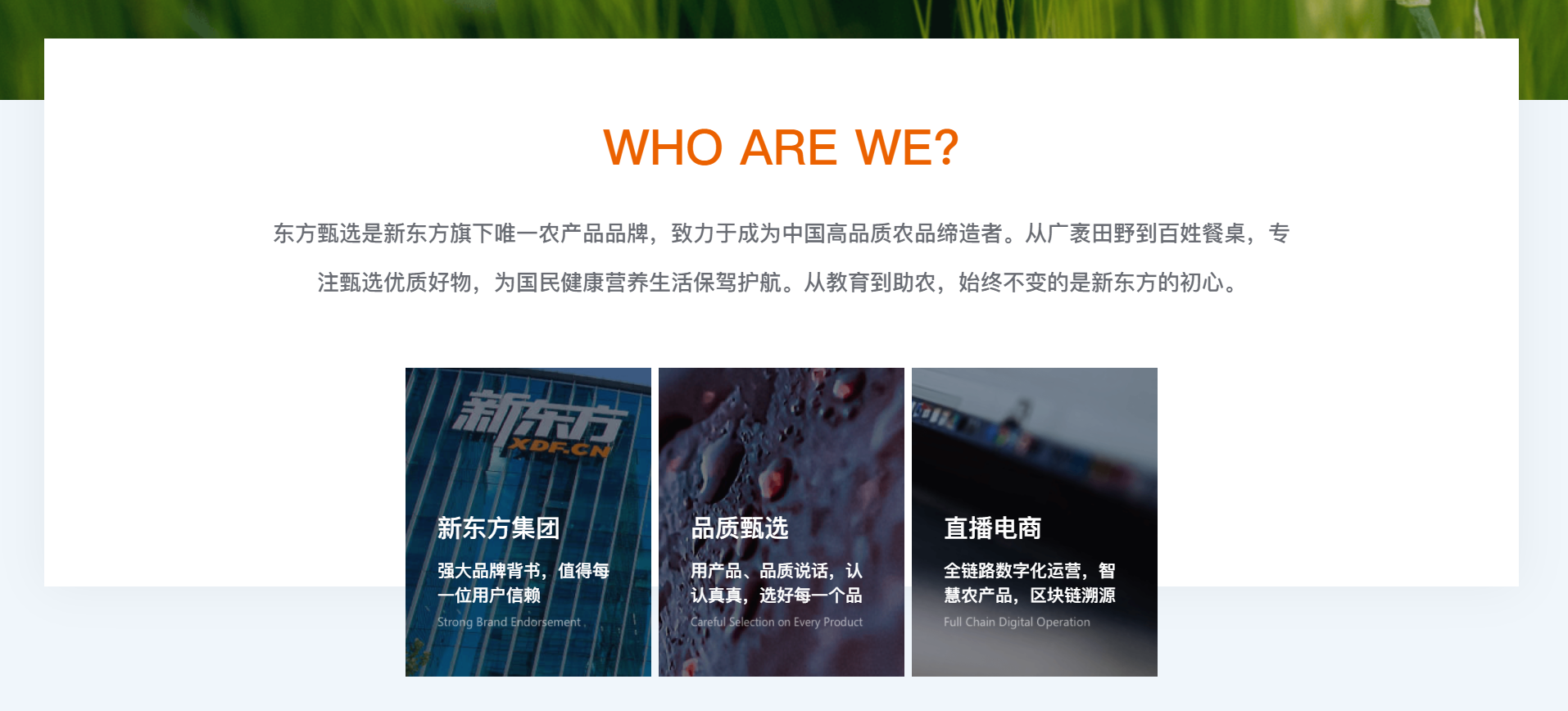 每一件成功的事情背后都有他們成功的故事與契機。中國14億的購買力,讓這個市場充滿著夢幻與驚喜。最近看了新東方過山車式的翻身,真讓我感知到企業(yè)創(chuàng)始人的戰(zhàn)略目光與戰(zhàn)略變現(xiàn)能力到底有多厲害。國家對于教育培訓(xùn)的管理出現(xiàn)了新規(guī)定,讓整個教育市場出現(xiàn)了過山車式的下滑,瞬間讓這些企業(yè)無法招架,導(dǎo)致大部分破產(chǎn)清算的企業(yè)不在少數(shù)。而新東方在這種嚴(yán)峻的環(huán)境下,也不例外,股票從四十幾元,直接下降到2元,面對這樣的沖擊,俞敏洪的每一步選擇都將決定新東方的生與死·······在外界唱衰新東方的時候,俞敏洪卻找到了自己喜歡的賽道~發(fā)展農(nóng)業(yè)。我看過他的一期采訪,支持人問他:你覺得東方甄選為什么會火?