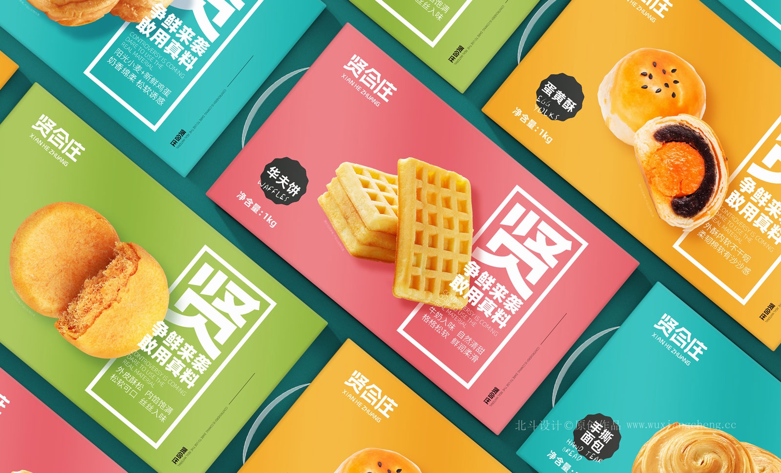 早期北斗設(shè)計(jì)與賢合莊溝通后確認(rèn)以下合作內(nèi)容:1.賢合莊的logo設(shè)計(jì),還有針對賢合莊推出的京東電商平臺(tái)上的系列休閑面包包裝設(shè)計(jì)。