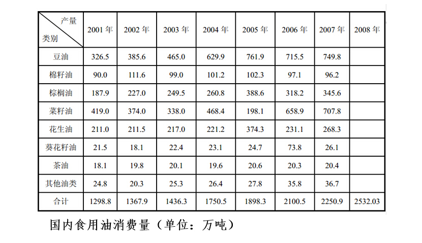 二是食用油料供給嚴重不足,油脂工業(yè)潛力巨大。我國是食用油消費大國,也是食用油進口大國。根據(jù)海關統(tǒng)計,2007年我國進口油脂油料總計折油1,509萬噸,較2006年增加306.6萬噸,增長25.5%。2007年,我國國產(chǎn)食用植物油為1,035萬噸,自給率僅為46%,是我國歷史上食用植物油自給率最低的年份。可以看出,我國的食用油還遠不能做到自給自足,每年都需要花費大量外匯進口食用油,以滿足國內(nèi)市場需要。