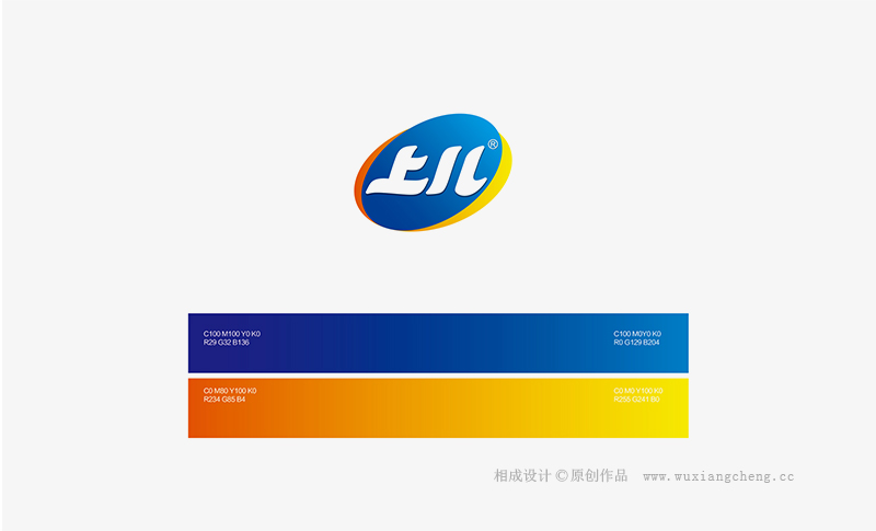 1.相成品牌設(shè)計為上兒塑造了全新的品牌logo形象,logo設(shè)計使用了時尚活力的字體設(shè)計,在顏色搭配上使用了藍色與橙黃色的互補色結(jié)合,整體的視覺效果力求簡潔及強烈的視覺沖擊。