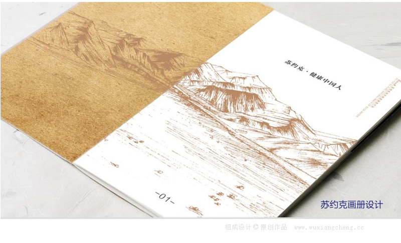 蘇約克的品牌畫冊設(shè)計(jì)也是采用了豎排形式,因?yàn)榭紤]到其產(chǎn)品的特別屬性——天然健康,原始時(shí)代等等這些關(guān)鍵詞,相信大家都會(huì)想象到無污染,環(huán)保的設(shè)計(jì)概念,這里相成的設(shè)計(jì)師根據(jù)品牌的整體形象定位,設(shè)計(jì)排版上面選用了大量留空的設(shè)計(jì)概念,同時(shí)在材質(zhì)上面也選用了特別的紙張,如封面的牛皮紙,里面的防宣紙,這里提示下,不同的產(chǎn)品畫冊在選用材質(zhì)方面很重要。