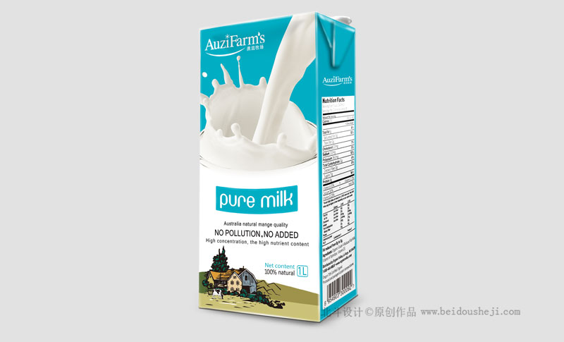 看下澳滋牧場升級后的包裝設計,我們提煉了原先的牛奶杯,這個杯子和牛奶元素的結合是大眾消費者認知澳滋牧場出牛奶的一個產(chǎn)品符號,北斗設計公司需要把這個符號演繹成為日后成為澳滋牧場的品牌屬性識別符號,看到這杯充滿著誘惑的牛奶就直觀聯(lián)想到澳滋牧場的純牛奶。然后純牛奶的賣點在于時間的把控,在奶源地的把控,這里畫面出現(xiàn)了新西蘭的小作坊牛欄意圖就是希望用插畫的形式來展現(xiàn)出奶源地的地理屬性。給到消費者一個奶源地安全的宣傳及認知,我們就是來自新西蘭的小農(nóng)場。體現(xiàn)的是小養(yǎng)戶的天然養(yǎng)殖概念。