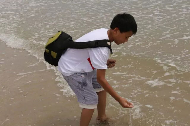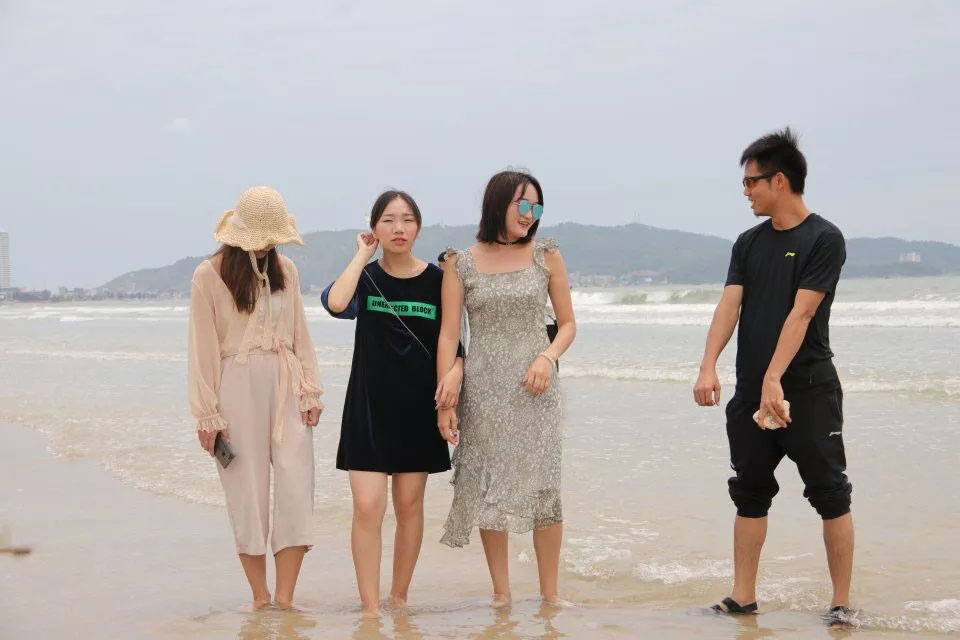 一到沙灘,把腳邁入冰涼的海水里時(shí),就把熱辣的陽光和30多度的高溫完全拋到了腦后,特別是看見一地的貝殼,大家的眼睛都亮了,好多各式各樣的貝殼。對于第一次在沙灘上看到這么多貝殼我們而言,無疑是興奮的,每個(gè)人都撿了很多貝殼,安置好撿到的紀(jì)念品后就在海邊開啟了瘋狂拍照模式,玩得不亦樂乎。