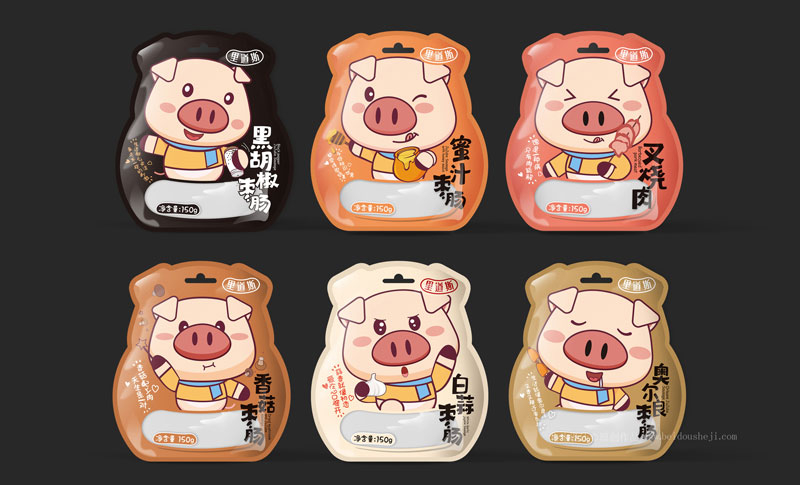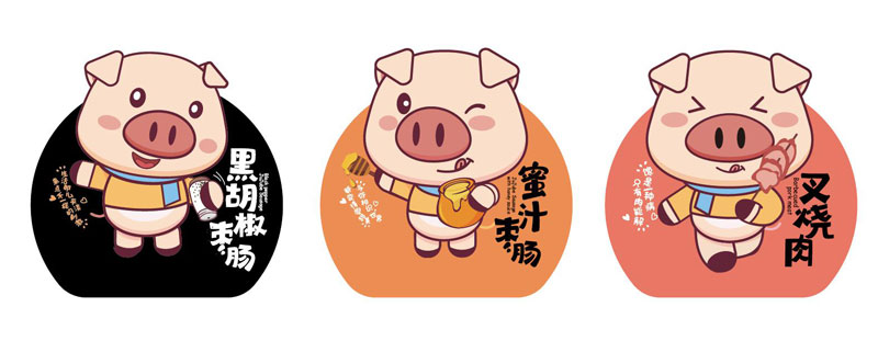 確定消費群體后,我們需要根據(jù)產(chǎn)品定位規(guī)劃出品牌的記憶符號。這里北斗設計運用了紅腸相關聯(lián)的小豬為主要的創(chuàng)意元素。