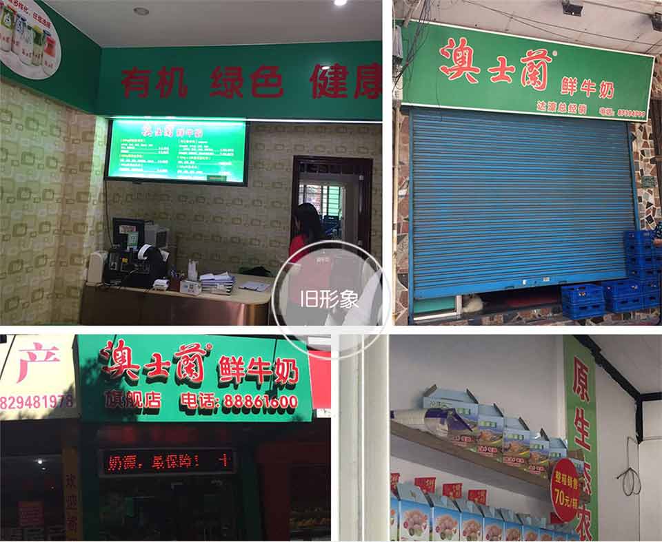 下面是澳士蘭以往的品牌形象,是土特產(chǎn)店還是牛奶店,看到這里我們就知道為什么風(fēng)行牛奶能夠快速在您的地盤崛起了。不是對手太強,而是您沒有意識去競爭。如果沒有去現(xiàn)場,您可能不敢相信這就是曾經(jīng)的領(lǐng)導(dǎo)品牌。如今被擠壓成這樣的局面。不改變,就會被淘汰,改變成功率一半,如果是你,你怎么選擇。