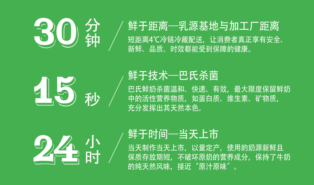 同時我們再告知您能夠做到當(dāng)天上市,是有依有據(jù)的。牧場就在加工廠30分鐘的路程,早上5點擠奶,7.30加工,9點送達各大門店。這是任何離開潮汕地區(qū)的鮮奶企業(yè)都是沒有辦法完成的時間掌控。所以這個就是澳士蘭的絕對優(yōu)勢。這個優(yōu)勢造就了消費能夠喝上營養(yǎng)成分最全的鮮奶。