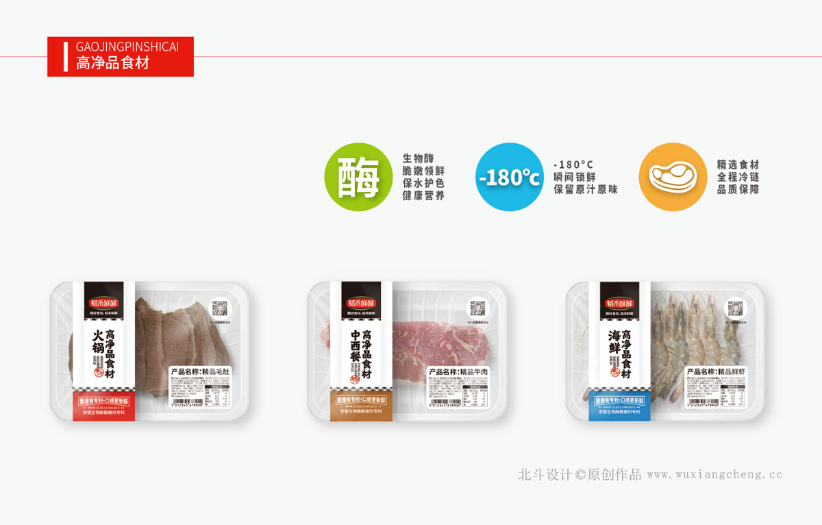 居于以上的品牌挖掘,北斗設(shè)計(jì)為韜禾鮮鮮提煉了品牌的延展傳播支撐:掌握生物酶脆嫩劑專利,為用戶提供高品質(zhì),高標(biāo)準(zhǔn)的“酶好食材”。