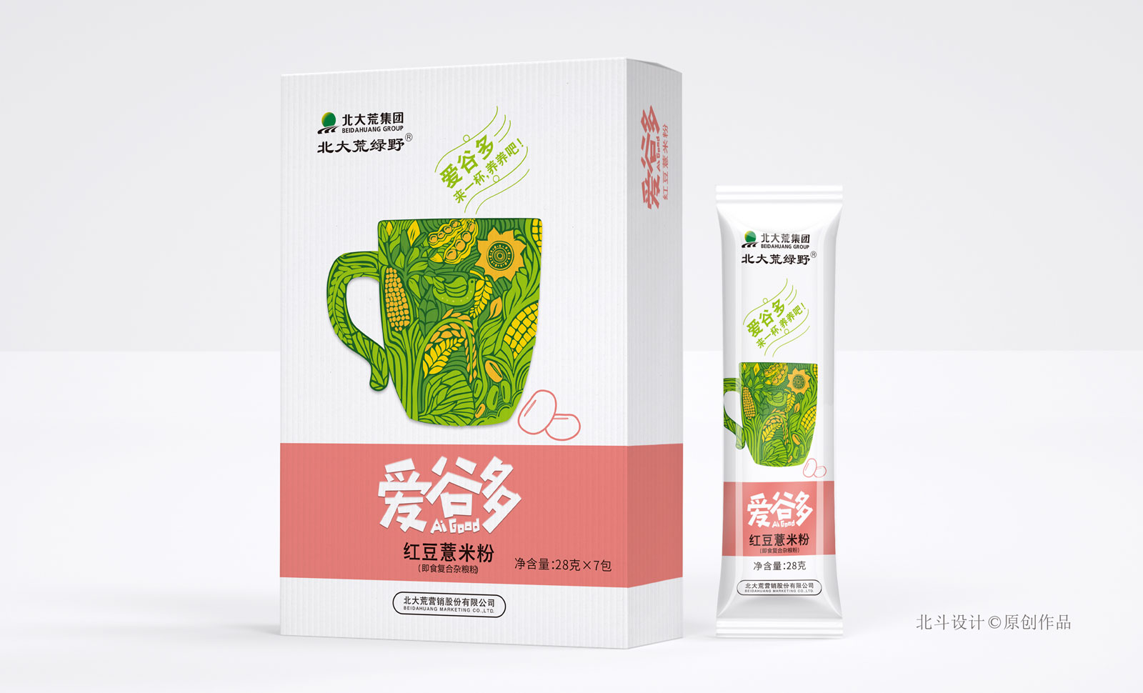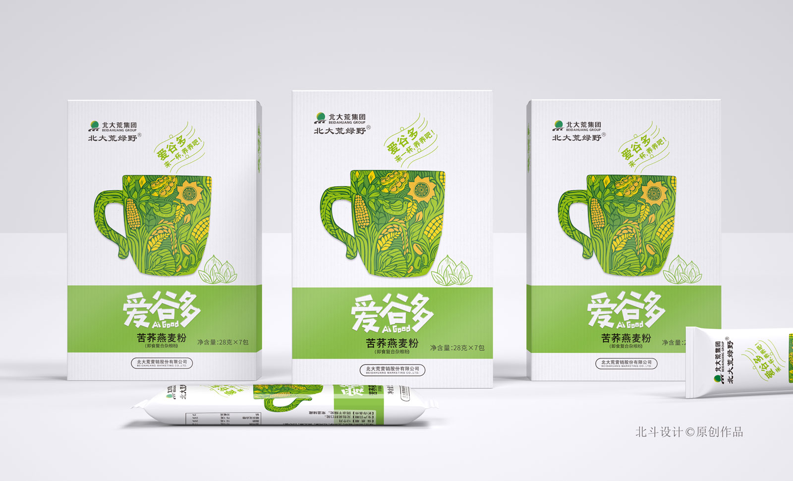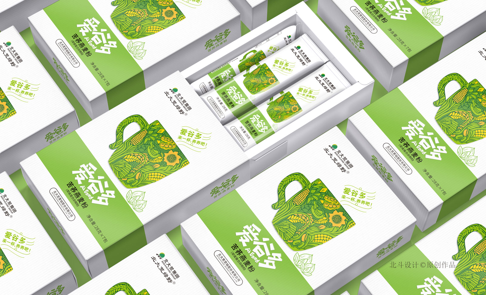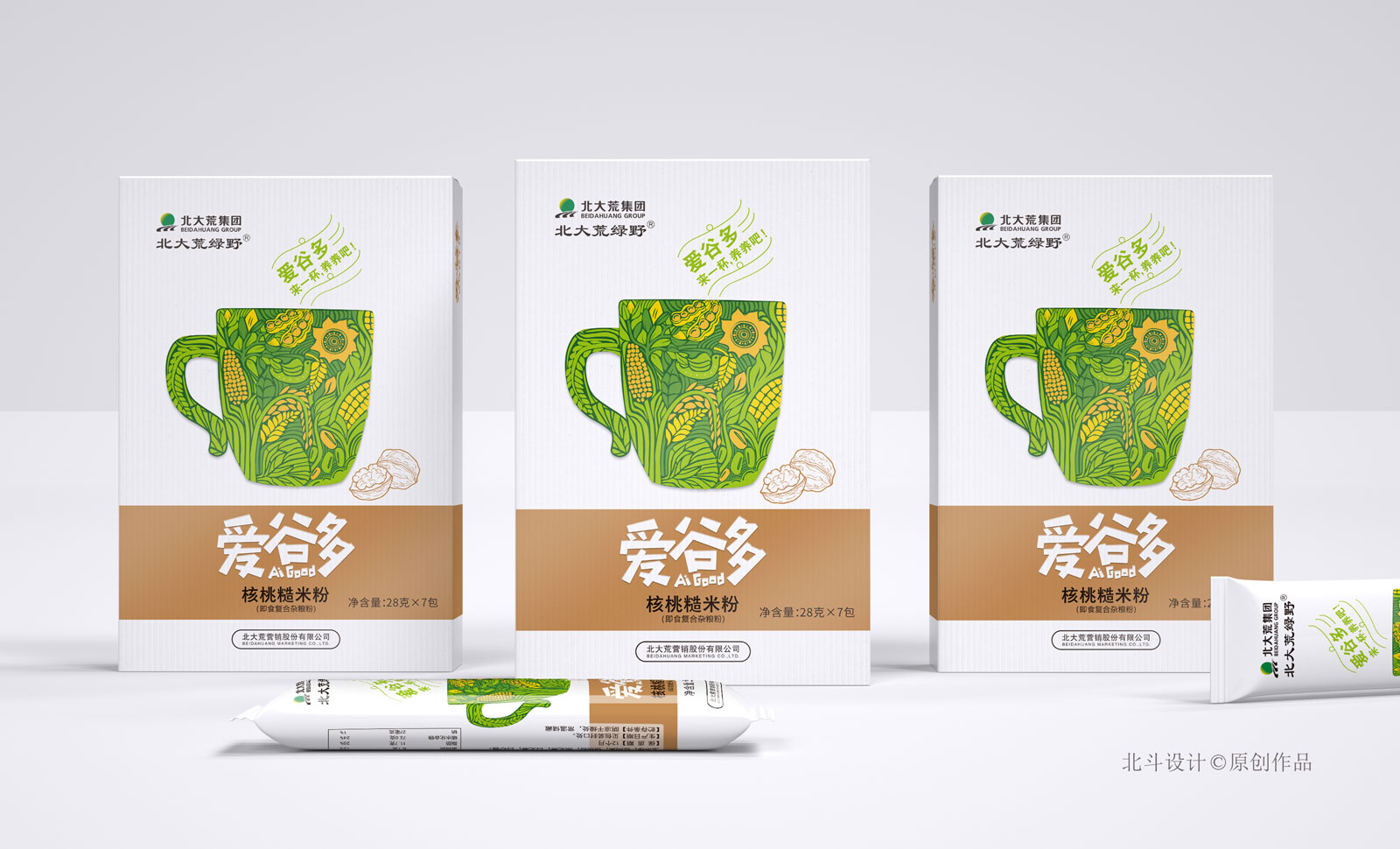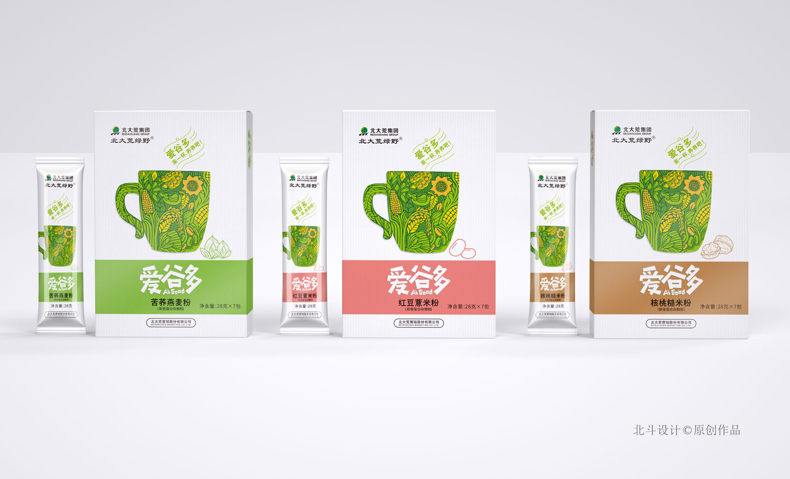 很高興北斗設(shè)計(jì)再次攜手北大荒達(dá)成對(duì)“愛谷多”品牌包裝創(chuàng)意合作。合作內(nèi)容包含:愛谷多品牌logo設(shè)計(jì)和旗下代餐系列的雜糧粉及同熟雜糧系列包裝設(shè)計(jì)。此次合作,客戶的需求很明確:要借用北大荒的品牌背書快速推出這個(gè)系列新品,順便帶動(dòng)子品牌“愛谷多”,渠道都是現(xiàn)有渠道經(jīng)銷商代銷,目的是為了搶占目前雜糧代餐粉的風(fēng)口市場。