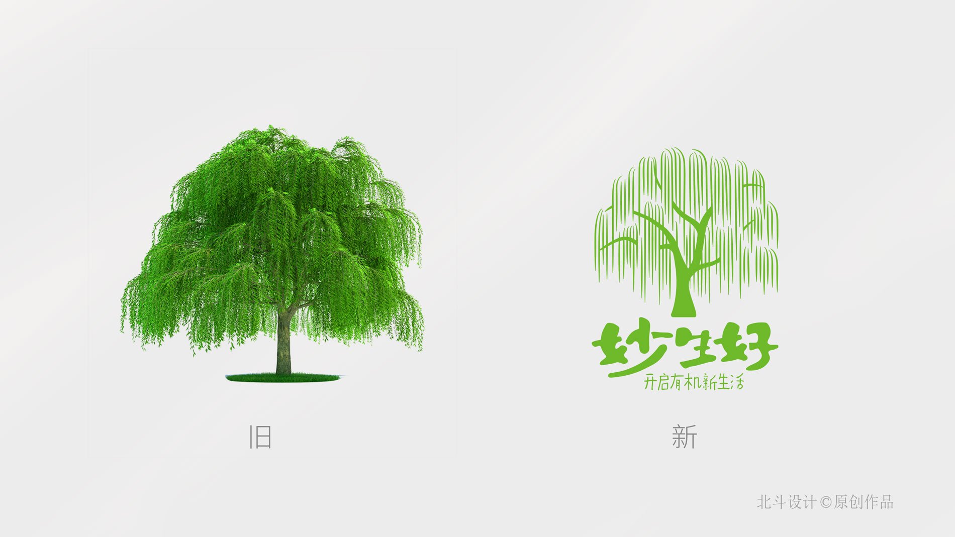 logo圖形升級,原來圖形是一顆真實的柳樹作為圖標,由于客戶對于柳樹的鐘愛,之所以選用柳樹作為記憶符號,是期待妙生好人的做人態(tài)度,始終心存善心,謙卑為懷。所以客戶希望在原有基礎上去提煉成設計圖形,所以這個圖形的發(fā)揮空間比較有限,我們嘗試過做大膽的創(chuàng)新,但是客戶最終還是決定在原有柳市那種茂密的葉子形態(tài)下去做下提升即可。