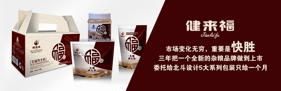 北斗品牌設(shè)計(jì)精準(zhǔn)“細(xì)化”+精準(zhǔn)定位+效率執(zhí)行。成就了健來福在五谷養(yǎng)生市場(chǎng)搶占一番市場(chǎng)。