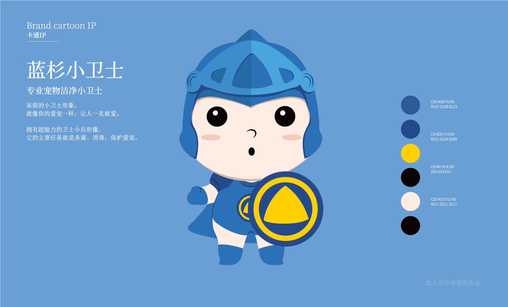 品牌ip是作為品牌資產(chǎn)的一個(gè)核心部分,它的存在能夠加強(qiáng)品牌的認(rèn)知記憶,而藍(lán)杉的品牌ip符號(hào)是怎樣的?首先我們需要從品牌的戰(zhàn)略定位上去分析,基于藍(lán)杉定位專業(yè)潔凈的概念,北斗設(shè)計(jì)為其創(chuàng)作了一個(gè)衛(wèi)士,命名“藍(lán)杉小衛(wèi)士”,衛(wèi)士的職責(zé)是保護(hù)主任的安全。為了讓這個(gè)衛(wèi)士更加形象生動(dòng),我們延展了不同的表情動(dòng)作,讓藍(lán)杉小衛(wèi)士更加萌動(dòng)有趣。