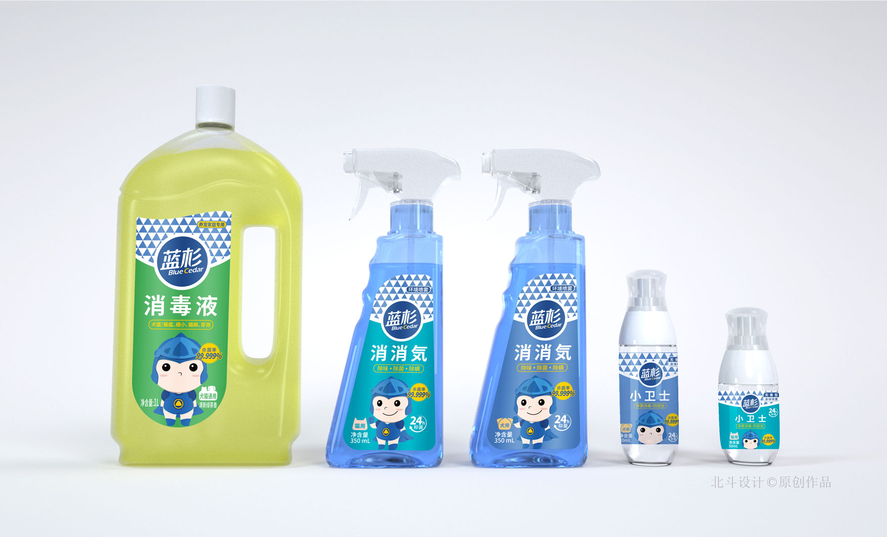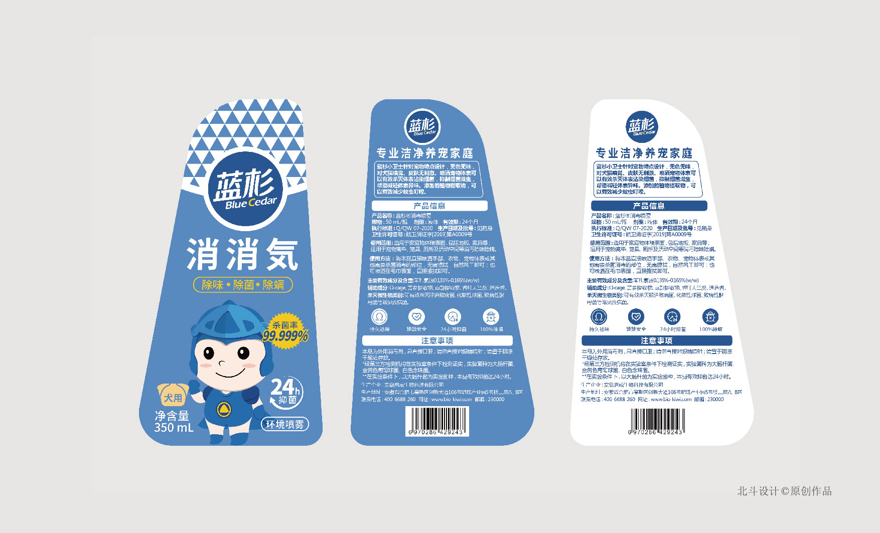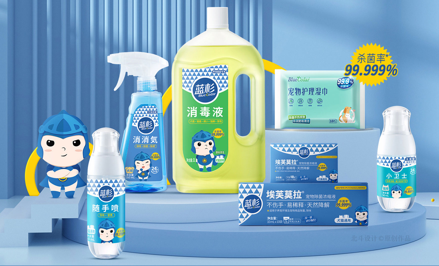 北斗設(shè)計(jì)于2021年接到啟威生物的委托,為其升級(jí)打造旗下“藍(lán)衫”寵物消殺日用品類品牌。