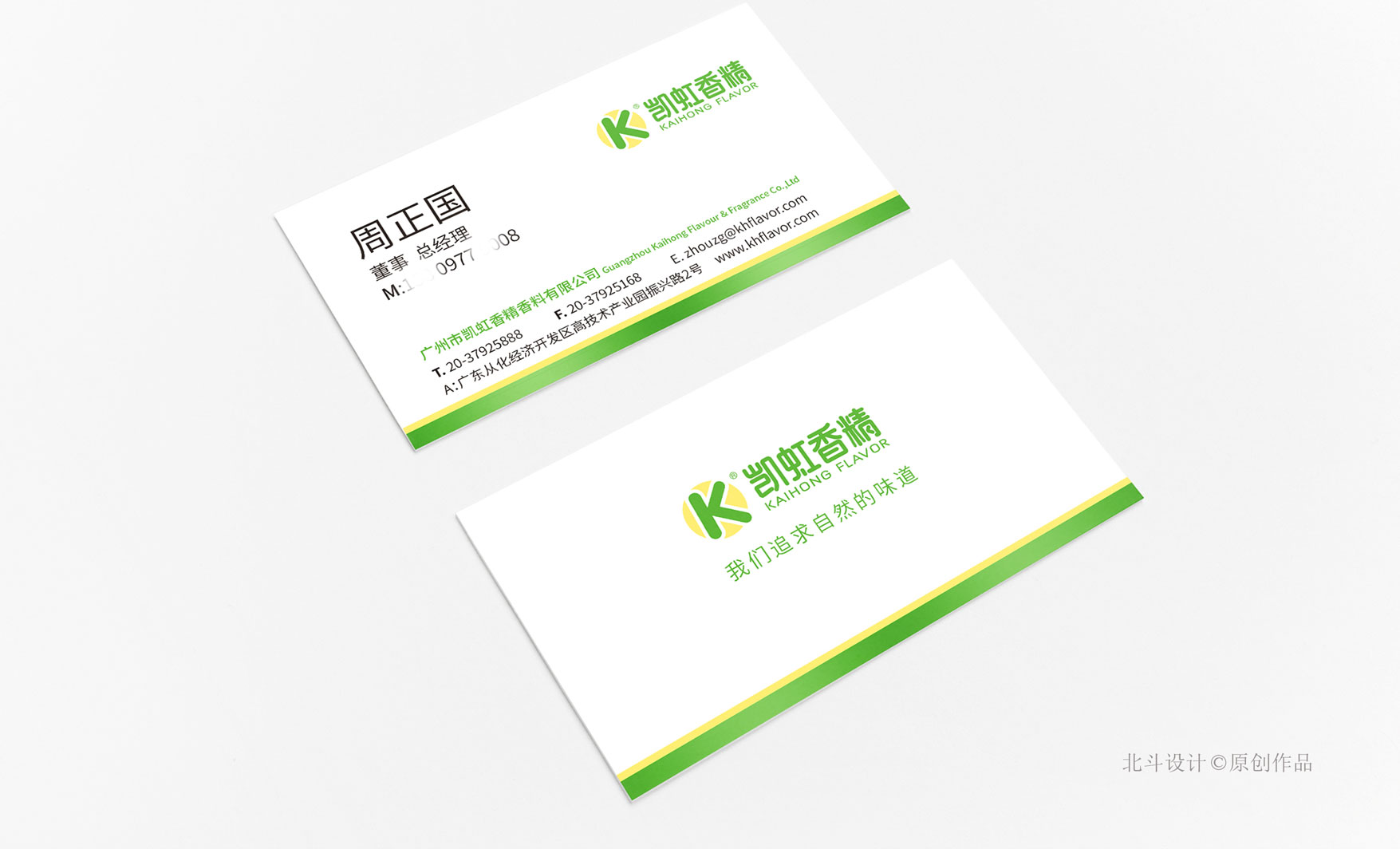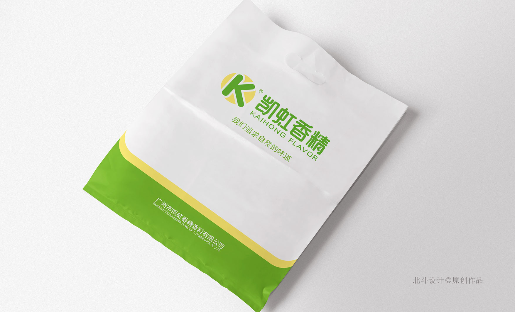 首先是對于現(xiàn)有l(wèi)ogo的升級,在原有l(wèi)ogo的基礎(chǔ)上,我們將凱虹香精的字體做了全新的修善設(shè)計(jì),以及圖形的改造變得更整體簡潔。色彩制定保持原有的綠色,外加淡黃色及金色作為輔助顏色。