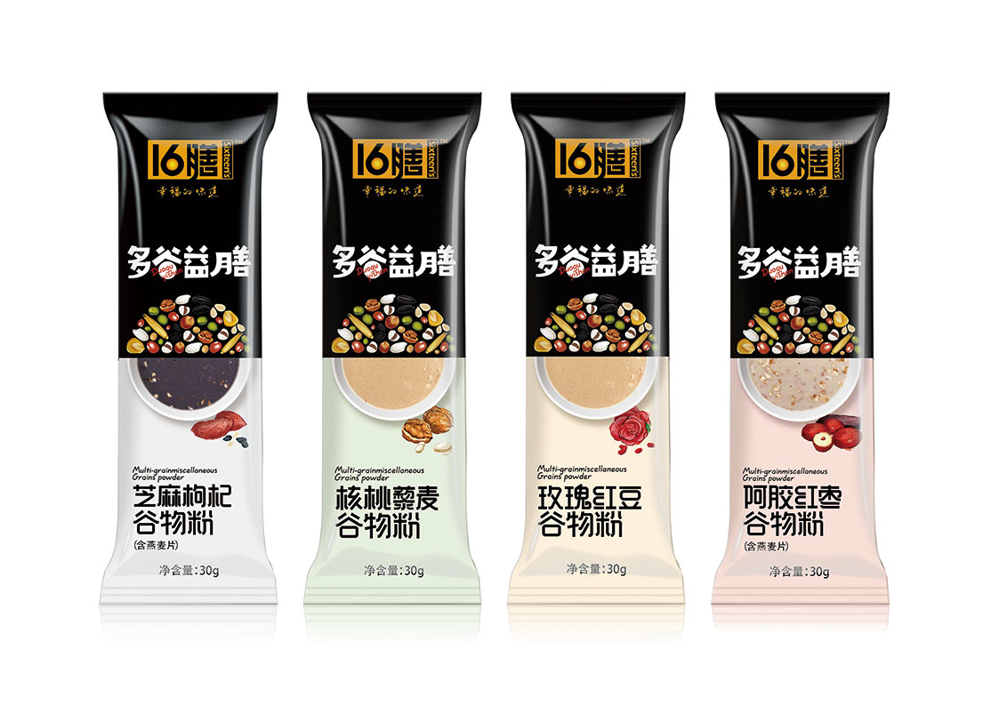 從消費(fèi)者的角度出發(fā),首先北斗設(shè)計(jì)在幫助16膳開(kāi)發(fā)這個(gè)系列產(chǎn)品包裝設(shè)計(jì)的時(shí)候,首先是站在市場(chǎng)的需求角度去思考這個(gè)產(chǎn)品,目前雜糧粉品牌大部分的使用環(huán)境是在家里,與辦公室,而十六膳為了拓展不同的渠道改變了包裝的包裝形式與規(guī)格,讓消費(fèi)者隨時(shí)隨地可以享受到美味可口的雜糧產(chǎn)品。