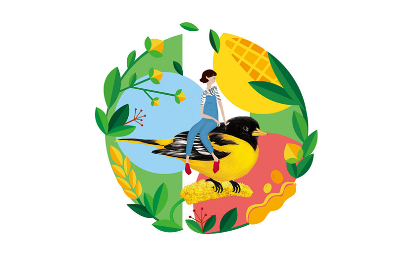 運(yùn)用了手繪的表現(xiàn)手法,塑造人與自然共生共存的概念。色彩的搭配根據(jù)小女生的偏好來(lái)選用搭配。粉色系色調(diào),小清新,高亮度。整個(gè)包裝設(shè)計(jì)的視覺(jué)色系,還是沿用了十六膳的黑色為標(biāo)準(zhǔn)顏色,高級(jí)黑搭配金黃色,而插畫(huà)的亮麗顏色和黑色也形成強(qiáng)烈的對(duì)比。