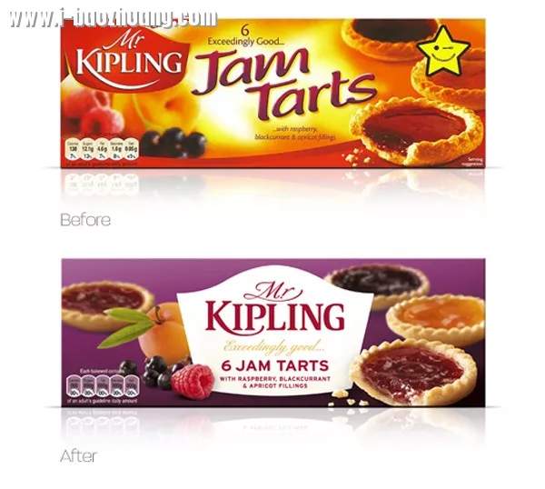 從上圖看到第一點(diǎn)基本方向是明確的,從舊產(chǎn)品包裝設(shè)計上您能直觀感覺到kipling就是做餅類產(chǎn)品,很直觀。這點(diǎn)kipling在最初的表現(xiàn)上有體現(xiàn)了,北斗設(shè)計強(qiáng)調(diào),當(dāng)一個包裝設(shè)計符合上面的任一策略,就需要保留,如果不完善就繼續(xù)完善。我們看到升級之前和升級之后的產(chǎn)品的食欲感就是完善后的結(jié)果。保留了產(chǎn)品的直觀表現(xiàn)。讓產(chǎn)品更具有食欲感。加強(qiáng)誘惑消費(fèi)者的味蕾,使其達(dá)到第四點(diǎn)策略,產(chǎn)生購買欲望。