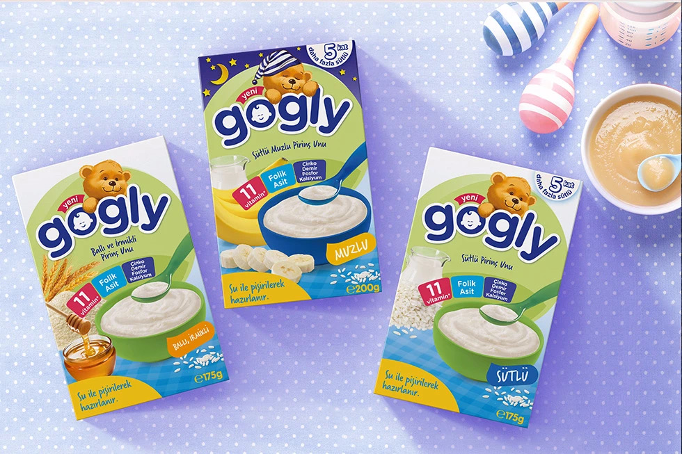 gogly的包裝認(rèn)識語言就是其真實(shí)的產(chǎn)品寫照,這是兒童輔食,就放兒童輔食上去,這是最為直接,也是傳播成本最低的表現(xiàn)手法,食品行業(yè)如果沒有好的創(chuàng)意就用數(shù)碼食材拍照作為主要的版面識別元素。這是最直接的創(chuàng)意。