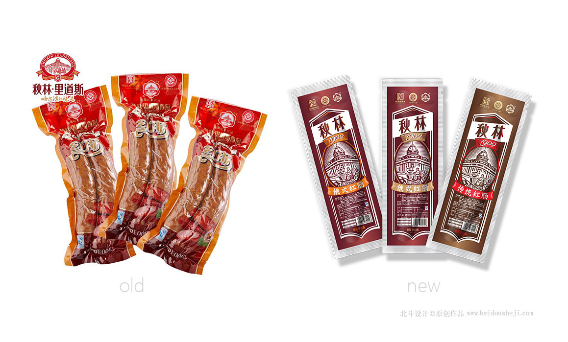這里分享一個俄式經(jīng)典紅腸的案例,這是秋林的招牌產(chǎn)品。北斗設(shè)計為其升級了產(chǎn)品包裝設(shè)計。