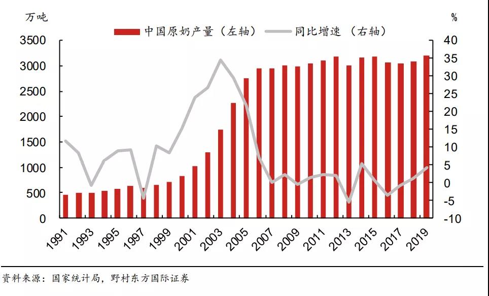 三聚氰胺事件前,中國原奶產量持續(xù)增長,野村證券
