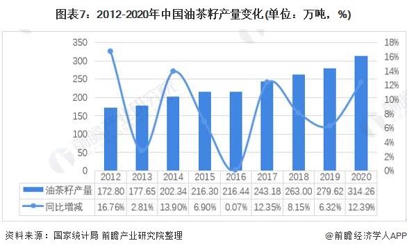 根據(jù)國家統(tǒng)計局發(fā)布的數(shù)據(jù),2020年油茶籽產(chǎn)量達到314.26萬噸,同比增長12.39%。茶油三年開花,五年結(jié)果,第8年開始進入盛果期的規(guī)律,因此茶油產(chǎn)量在近兩年開始大幅提升。