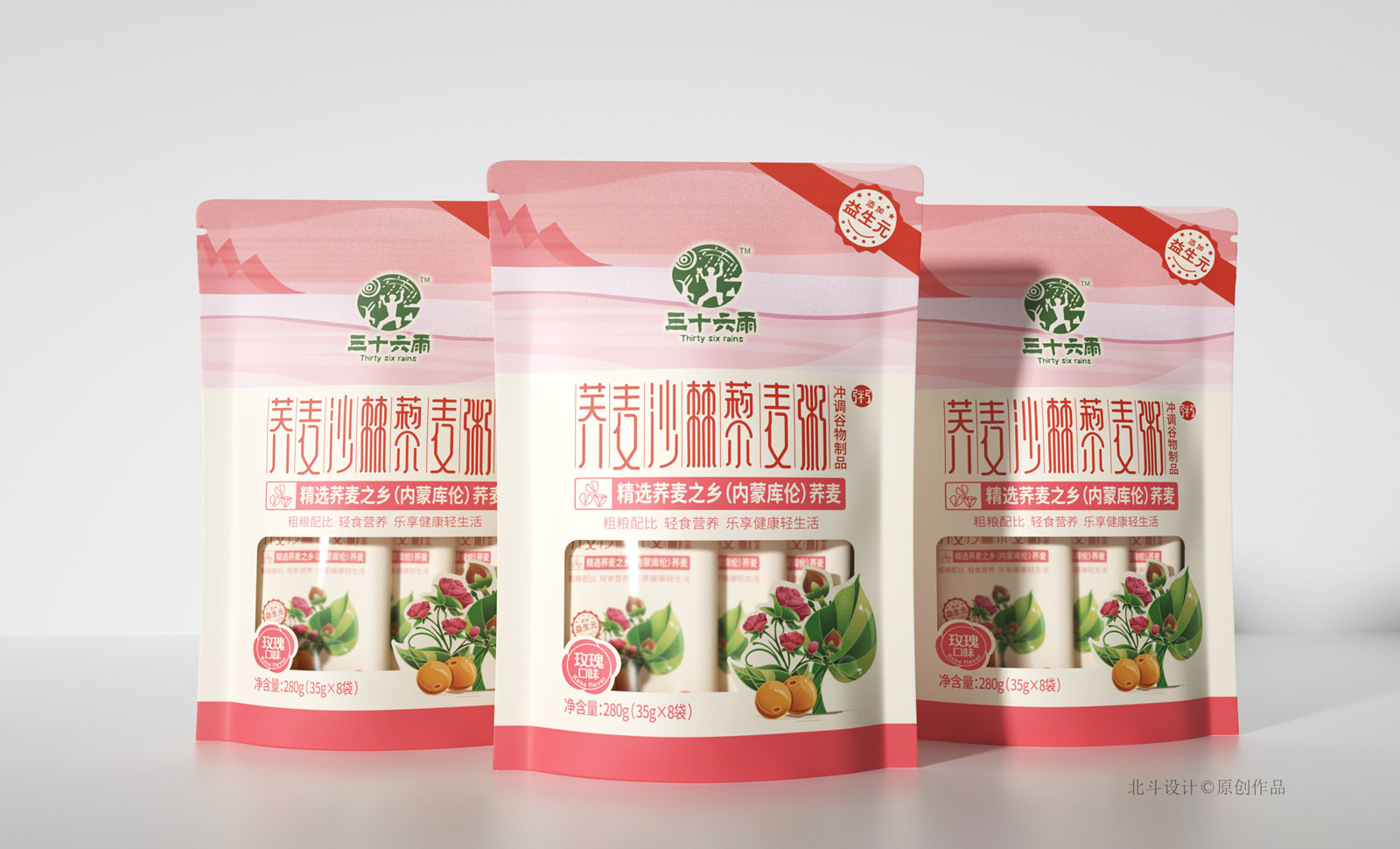 三十六雨蕎麥沙棘代餐粉包裝設(shè)計(jì)落地