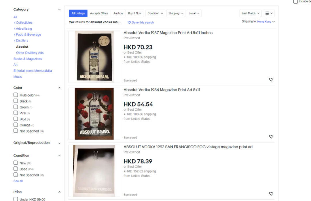 它做到了讓廣告成為一種藝術(shù)杰作:人們專門找到雜志上登載絕對伏特加廣告的那一頁,裁剪下來精心收藏。今天,在eBay上,你還可以找到上世紀(jì)80年代的絕對伏特加廣告藏品。