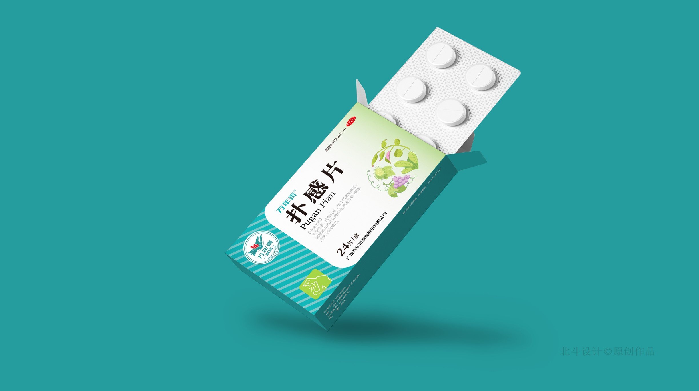 *圖片素材來(lái)自北斗設(shè)計(jì)為萬(wàn)年青設(shè)計(jì)的萬(wàn)年青撲感片原創(chuàng)包裝設(shè)計(jì),設(shè)計(jì)概念是:結(jié)合中成藥的元素為新產(chǎn)品包裝注入一種新穎的表現(xiàn)形式,色彩方面也選用了漸變色系的融合,讓本來(lái)高冷的藥品通過(guò)色彩的調(diào)和變得更有溫度感。從視覺(jué)方面能帶給用戶(hù)一種愉悅的心情。