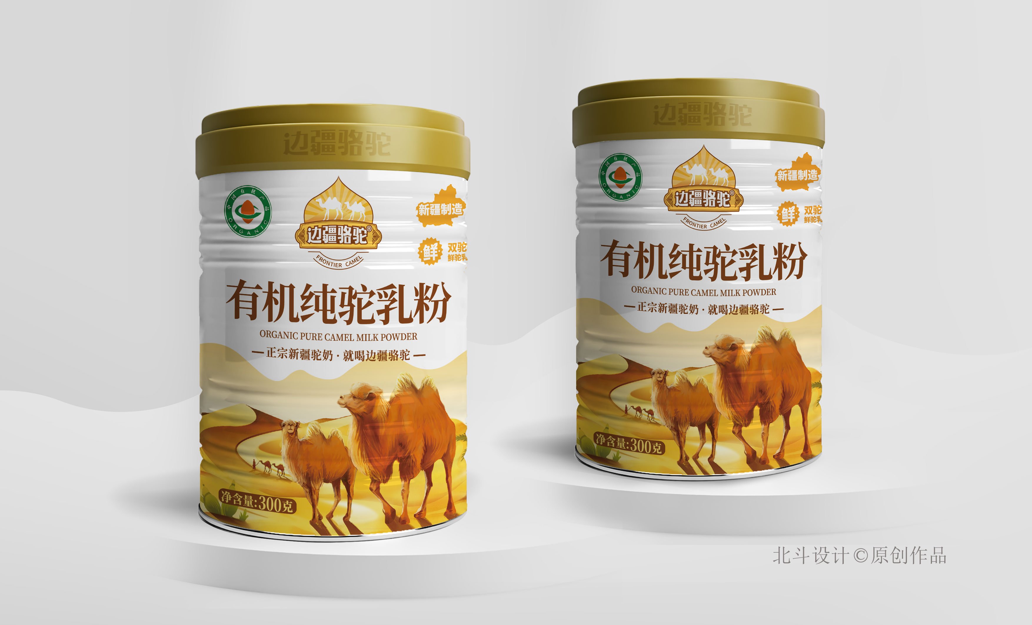這是北斗設計接觸的第一個做駝奶的客戶,駝奶屬于奶制品市場里的小眾食品,由于駝奶與牛奶的價值沒有太大的區(qū)別,但是物以希為貴,這就是市場規(guī)律,所以小眾市場也有自己存在的理由。邊疆駝奶的出現(xiàn)就是解決小眾市場的需求。