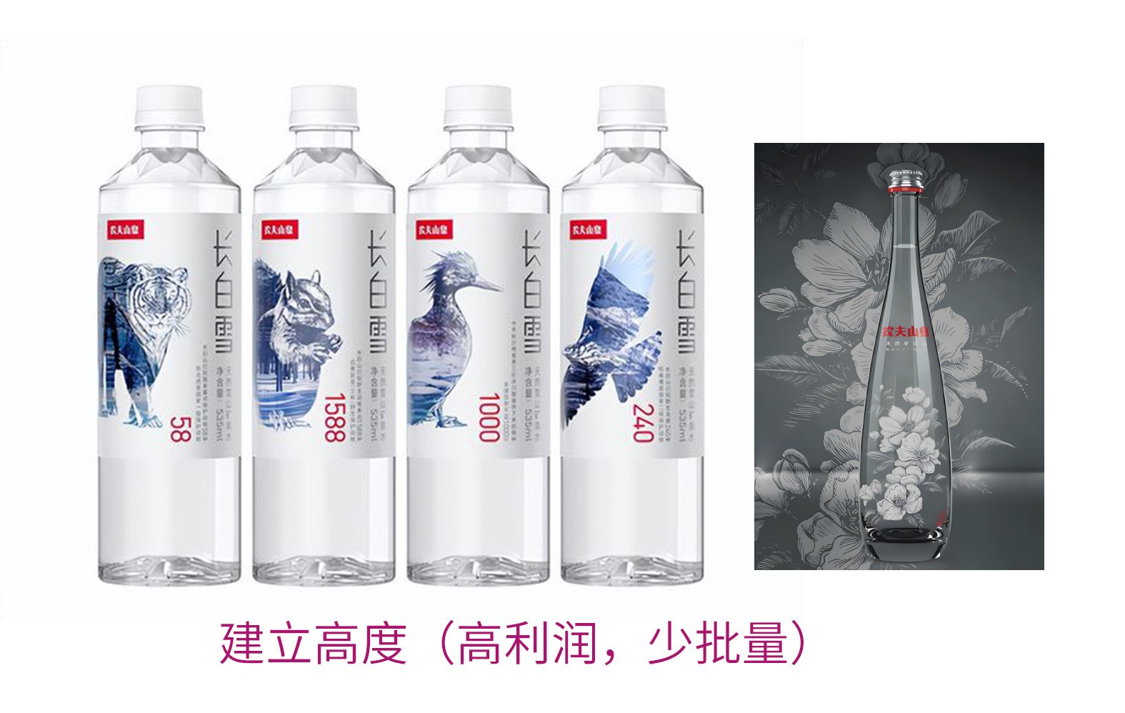 就像這款飲用水水,所有渠道上你看到最多的就是這個最普通的設計,也是最能讓你記住農夫山泉品牌的包裝設計。但是大部分客戶想要的就是建立高度的包裝設計,看不上走量且最能建立品牌認知的設計!這就是為什么一些小企業(yè)都沒等產品上架就被淘汰的原因。一些看似給用戶最高塔尖的產品,但是你卻賣兩塊錢,我找半天不知道你是誰?我也不敢買你!最后的結果就是叫好不叫賣!切記:脫離目標用戶去構建你所謂的高端,最后的結果是孤芳自賞!