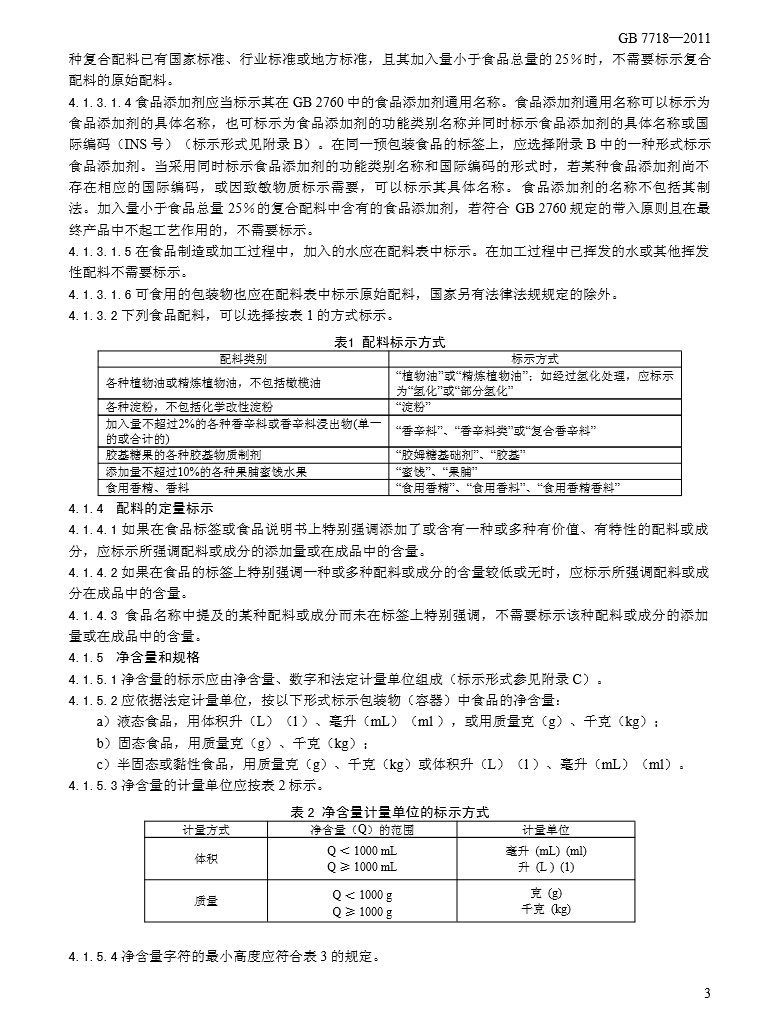 預先定量包裝或者制作在包裝材料和容器中的食品,包括預先定量包裝以及預先定量制作在包裝材 料和容器中并且在一定量限范圍內(nèi)具有統(tǒng)一的質量或體積標識的食品。 2.2 食品標簽