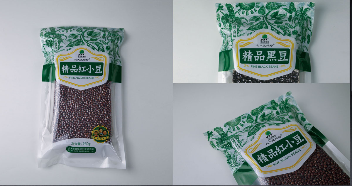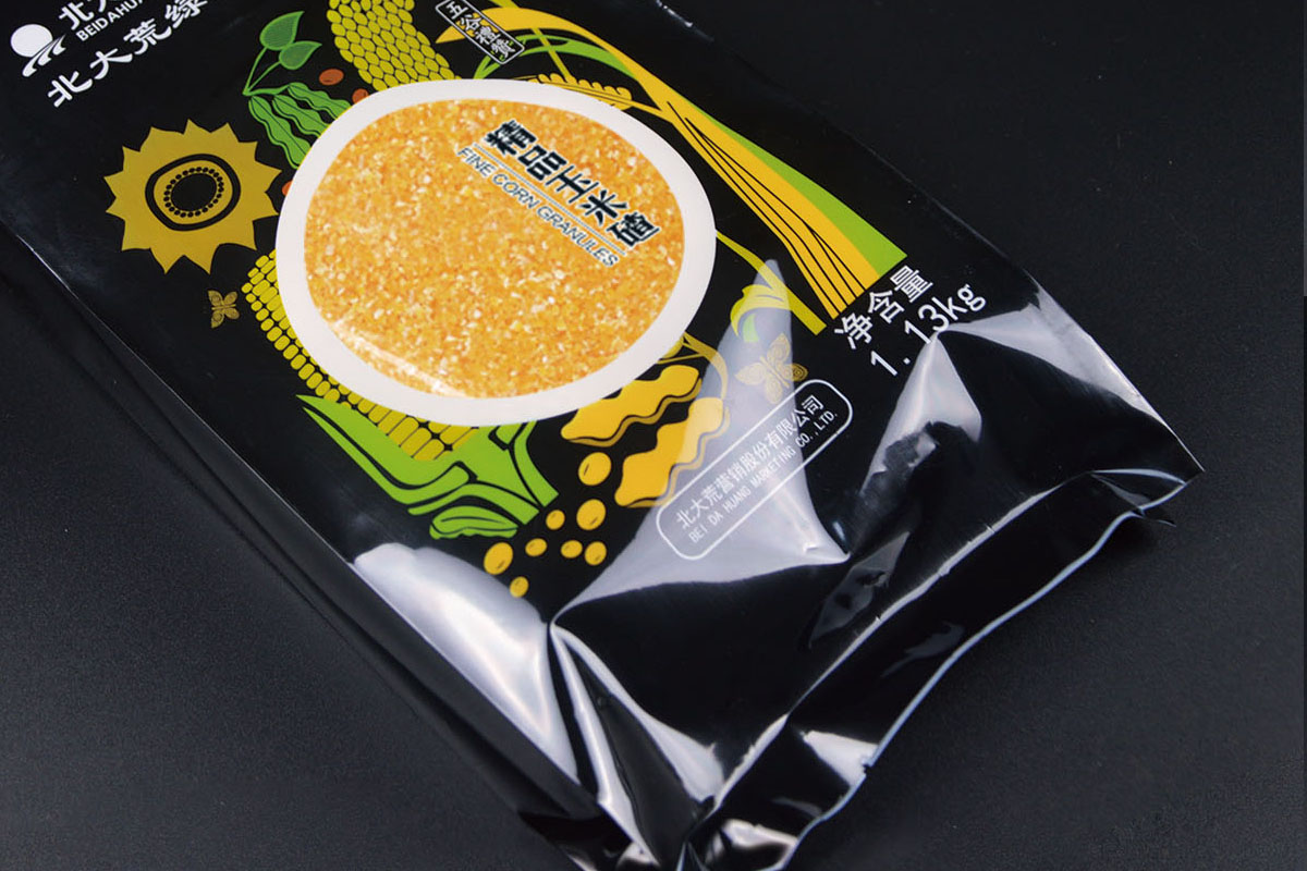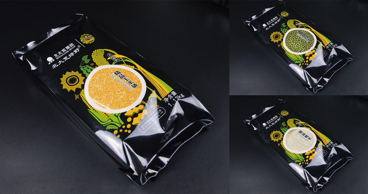 黑色這款雜糧包裝設計印刷的非常不錯,膠帶印刷對于顏色的矯正比較注重,如果把握不好的話會出現(xiàn)非常明顯的變化。所以在制版過程中需要矯正相對應的顏色。