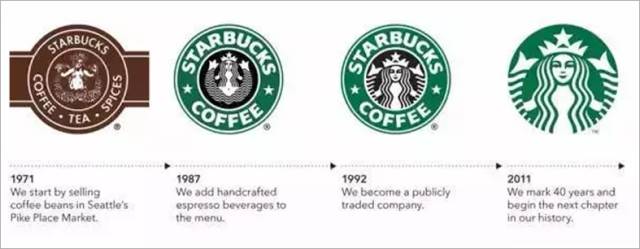 星巴克作為咖啡界的佼佼者,一直是很多人想要超越的對(duì)象。它的logo一直在演變,從一開始非常寫實(shí)的雙尾美人魚,到最后省去文字,簡(jiǎn)化美人魚的形象,并且將這個(gè)logo設(shè)計(jì)使用于品牌的每一個(gè)地方,到如今這個(gè)logo更加深入人心。