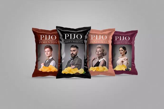 那么在企業(yè)品牌的包裝設計上能夠運用的策略,能否運用到產(chǎn)品包裝設計上呢?我們看下一款食品包裝設計,是國外的一款薯片包裝設計,運用了不同的核心人物作為產(chǎn)品品牌形象的ip塑造。通過這幾個人物來樹立自己產(chǎn)品獨特的形象包裝設計。