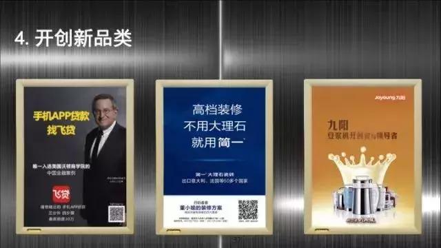 第三個是領導品牌,就是最簡單的「全國銷量遙遙領先」、「中國每十罐涼茶七罐加多寶」、「中國每十臺大吸力油煙機,六臺是老板」。
