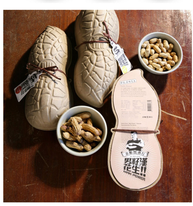 男子漢花生的這個包裝形式直接采用花生的形狀作為包裝外形。這樣能夠更加有利于識別產(chǎn)品的屬性。